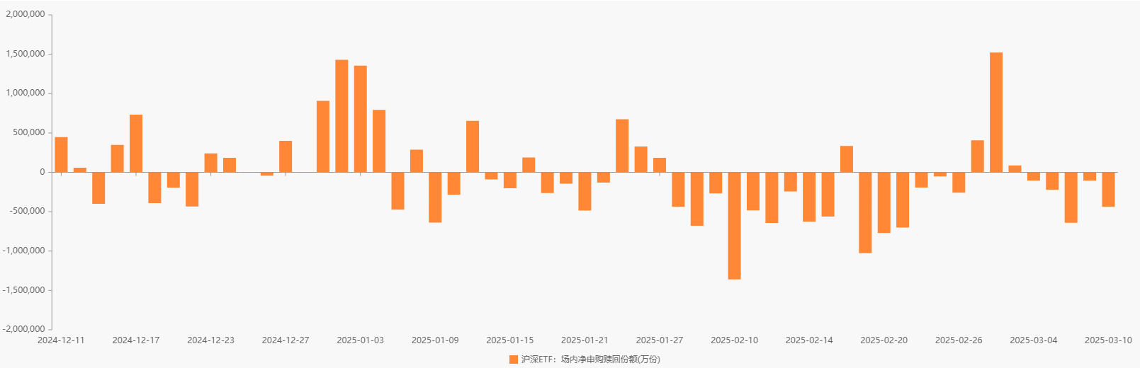 昨日(3月10日),东方财富Choice数据显示,场内股票型ETF净赎回43.81亿份;其中,沪市股票型ETF净赎回31.53亿份,深市股票型ETF净申购12.29亿份。以最新净值计,昨日市场净赎回135.29亿元。