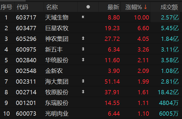 上证报中国证券网讯 3月11日,猪肉股逆势拉升,截至13时40分,天域生物午后涨停,巨星农牧、神农集团、光明肉业等跟涨。
