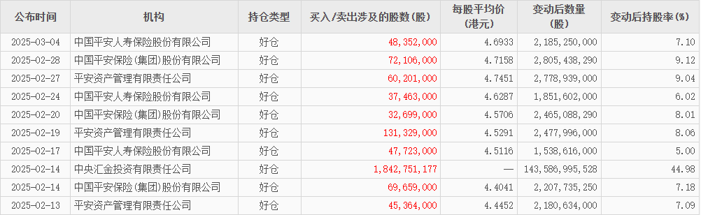 2025年以来,中国平安联合旗下平安人寿、平安资管等平台频繁增持农业银行H股。