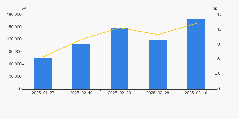 2025年1月27日至今,公司股东户数成倍增长,区间涨幅达126.16%。2025年1月27日至2025年3月10日区间股价上涨102.76%。