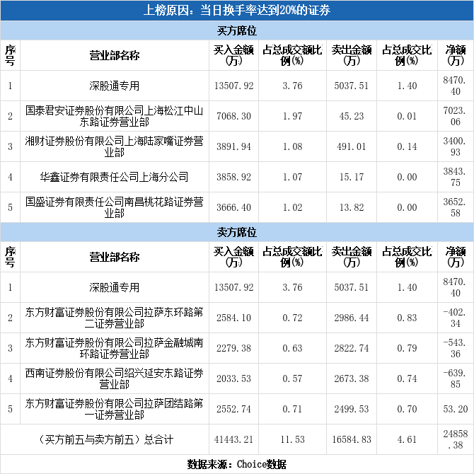 今日龙虎榜单上出现了深股通的身影,占据了买一、卖一的位置,净买入8470.40万元,占当日成交总额的2.36%。