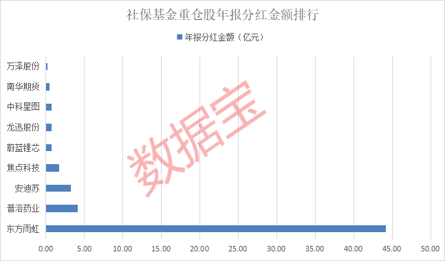 已公布年报的10只社保基金重仓股中,9股同步公布了2024年度现金分红方案,合计拟分红总额达到56.14亿元。东方雨虹拟分红金额最高,普洛药业、安迪苏紧随其后,拟分红金额分别为4.12亿元、3.22亿元。