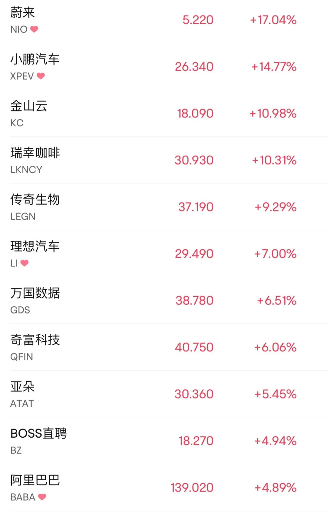 热门股方面,蔚来涨17.04%,小鹏汽车涨14.77%,理想汽车涨7%,阿里巴巴涨近5%,拼多多涨2.03%,网易涨1.97%,京东涨0.27%。