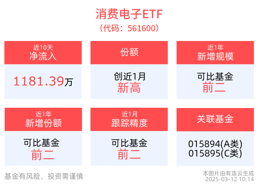 拉长时间看,截至2025年3月11日,AI人工智能ETF近1周累计上涨2.34%。消费电子ETF近1周累计上涨0.45%,涨幅排名可比基金1/5。