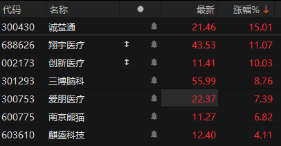 上证报中国证券网讯 3月12日午后,脑机接口板块拉升。13时19分,创新医疗涨停,诚益通、翔宇医疗涨超10%,三博脑科、爱朋医疗等跟涨。