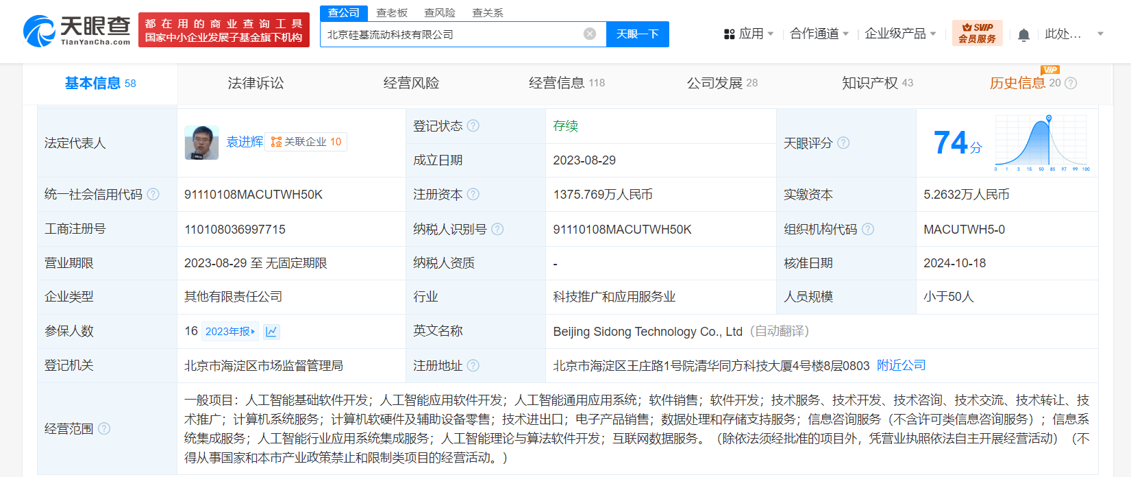 南方财经3月12日电,天眼查App显示,近日,北京硅基流动科技有限公司发生工商变更,北京智谱华章科技有限公司退出股东行列,新增美团旗下天津三快科技有限公司以及北京星连鼎森股权投资基金合伙企业(有限合伙)、南京绿涌锦航股权投资管理合伙企业(有限合伙)、中小企业发展基金普华(杭州)创业投资合伙企业(有限合伙)为股东,注册资本由约1375.8万人民币增至约1512.4万人民币,同时,部分主要人员也发生变更。北京硅基流动科技有限公司成立于2023年8月,法定代表人为袁进辉,经营范围含人工智能基础软件开发、人工智能应用软件开发、人工智能通用应用系统、计算机系统服务、电子产品销售、数据处理和存储支持服务、信息咨询服务、互联网数据服务等。股东信息显示,该公司现由袁进辉、王慧文、唐宇煜、北京奇绩创坛二期创业投资中心(有限合伙)及上述新增股东等共同持股。官网信息显示,硅基流动是一家生成式AI计算基础设施平台提供商,产品涵盖大语言模型推理引擎、高性能文生图/视频等产品。