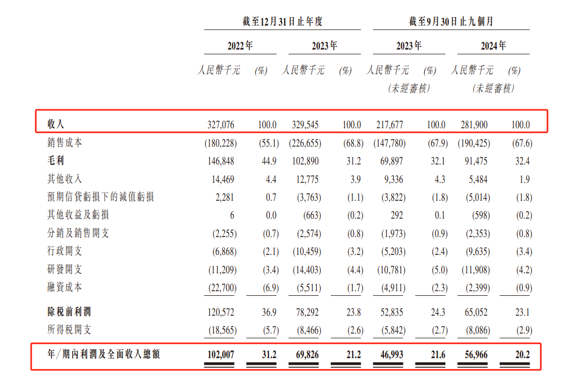 2022年、2023年和2024年前三季度,海伟电子的收入分别为3.27亿元、3.30亿元和2.82亿元,其净利润分别为1.02亿元、0.70亿元和0.57亿元。