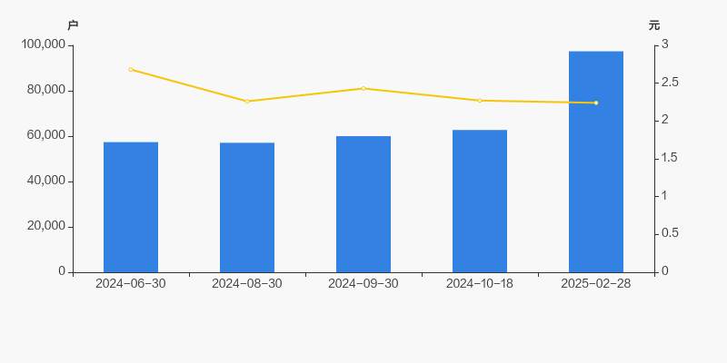截至2025年2月28日,公司最新总股本为41.49亿股,其中流通股本为41.44亿股。户均持有流通股数量由上期的6.61万股下降至4.25万股,户均流通市值9.53万元。