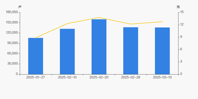 2025年1月27日至今,公司股东户数显著增长,区间涨幅为28.75%。2025年1月27日至2025年3月10日区间股价上涨44.12%。