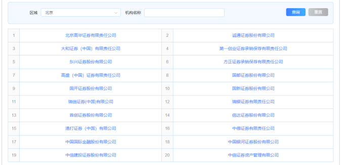 北京辖区内券商名单。
