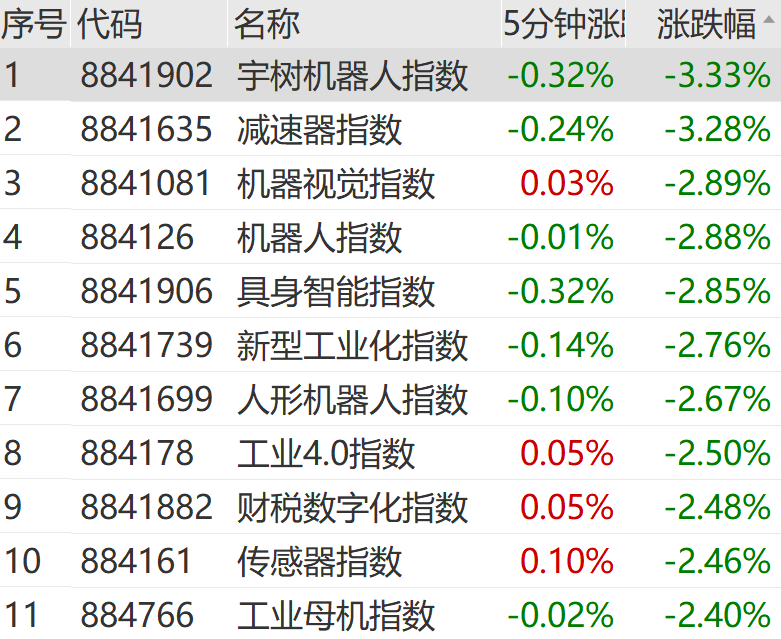 3月13日上午,A股机械设备、计算机等板块跌幅居前,机器人概念集体回调。