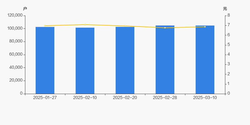 截至2025年3月10日,公司最新总股本为66.38亿股,其中流通股本为66.34亿股。最新户均持有流通股数为6.33万,较上期略有上升;户均流通股市值为43.44万元。