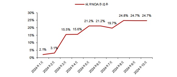 2024年20万至25万元价格区间城市NOA渗透率图片来源:浙商证券研究所