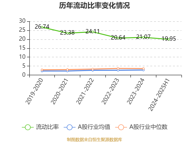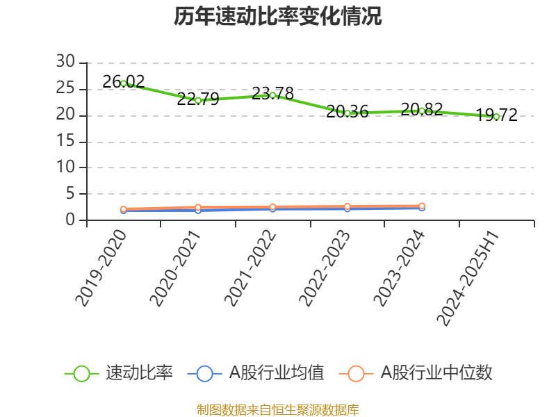 报告期内,公司流动比率为19.95,速动比率为19.72。