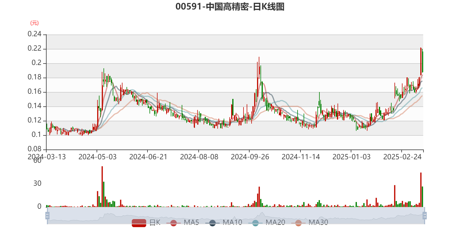 以3月13日收盘价计算,中国高精密目前市净率(TTM)约0.11倍,市销率(TTM)约0.99倍。