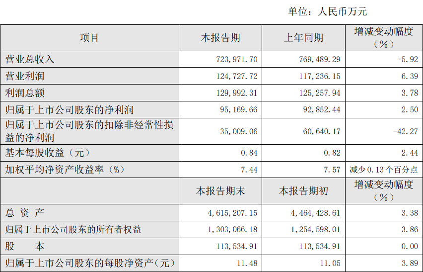 公司2024年实现营业总收入约为72.4亿元,较上年同期减少5.92%。归母净利润约为9.52亿元,较上年增长2.50%。