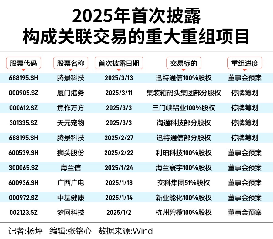 而今年首次披露的31单重大资产重组中,也有10单为关联交易,除了上文提到的焦作万方、中基健康外,腾景科技定增收购迅特通信,厦门港务定增收购集装箱码头集团,狮头股份定增收购利珀科技等,均构成关联交易。