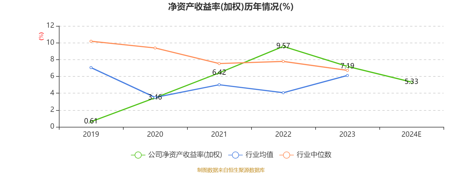 数据显示,2024年公司加权平均净资产收益率为5.33%,较上年同期下降1.86个百分点。