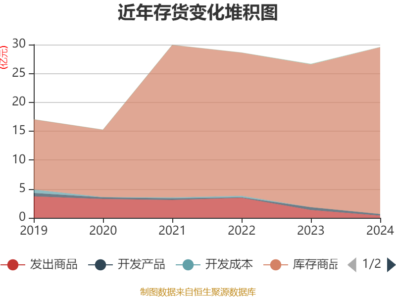 从存货变动来看,截至2024年末,公司存货账面价值为29.56亿元,占净资产的42.48%,较上年末增加2.93亿元。其中,存货跌价准备为3.18亿元,计提比例为9.71%。