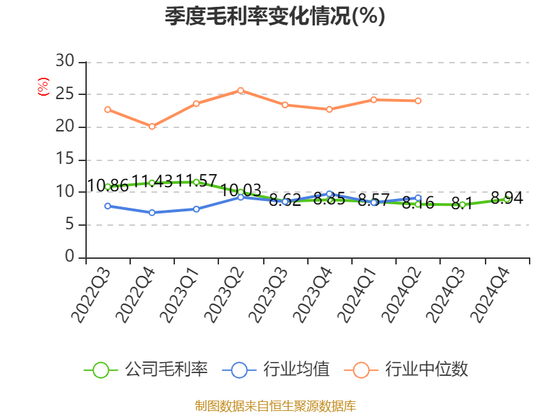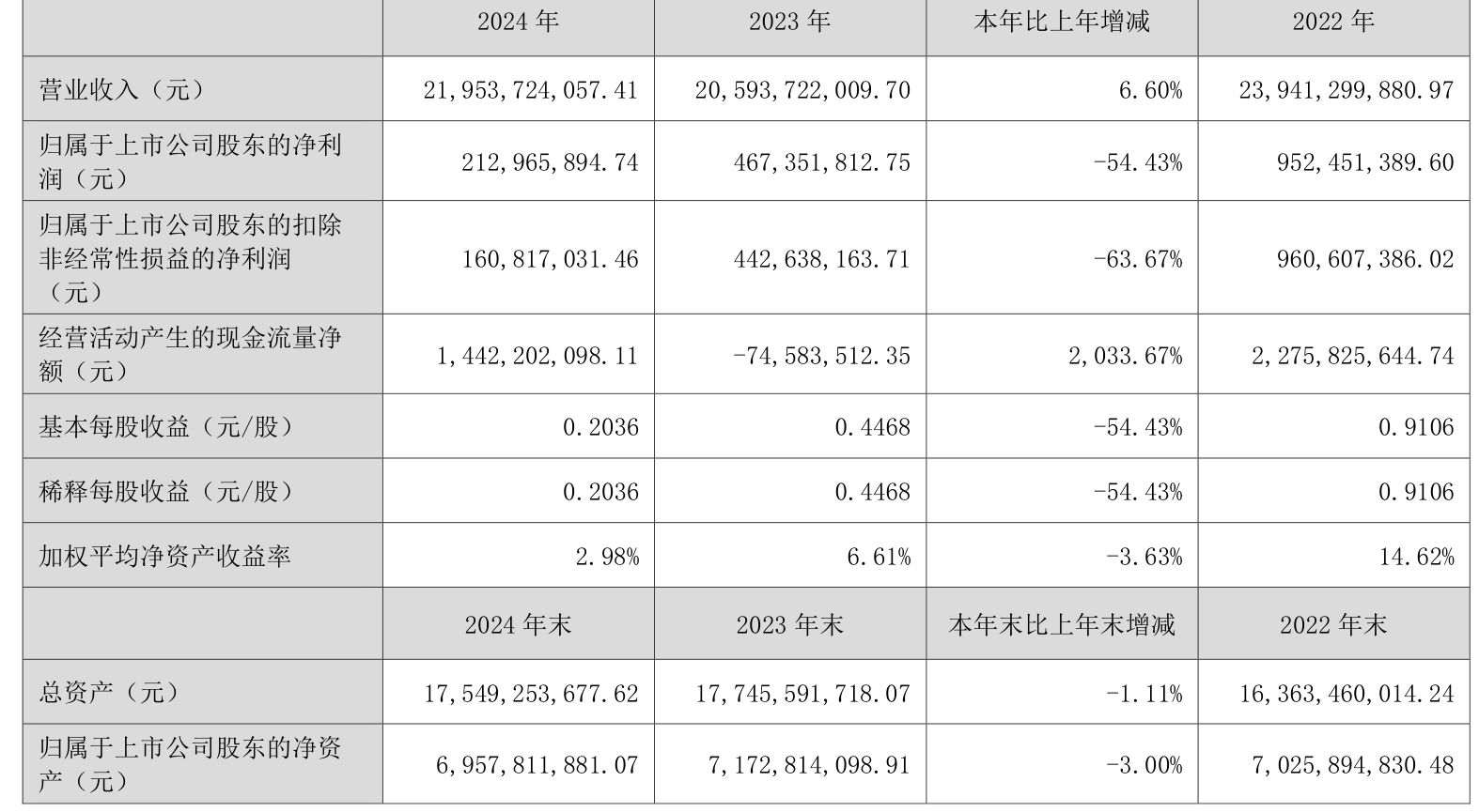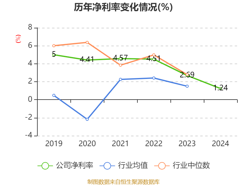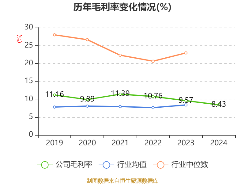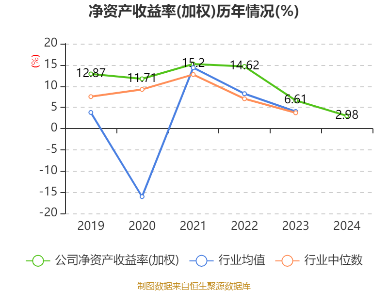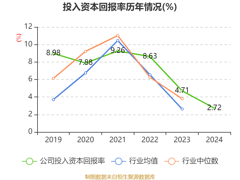 数据显示,2024年公司加权平均净资产收益率为2.98%,较上年同期下降3.63个百分点。公司2024年投入资本回报率为2.72%,较上年同期下降1.99个百分点。