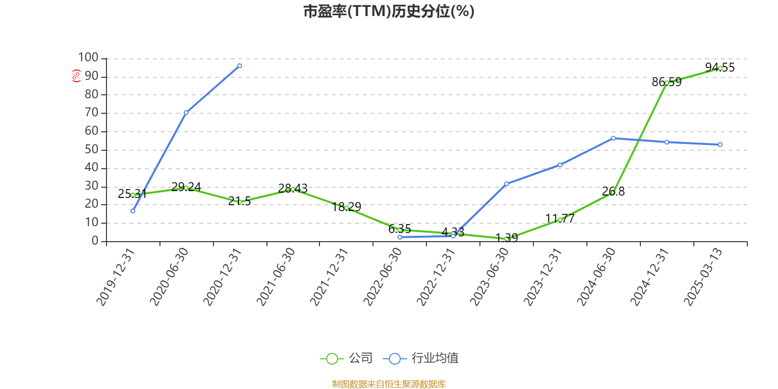 市盈率、市净率为负时,不显示当期分位数,会导致折线图中断。