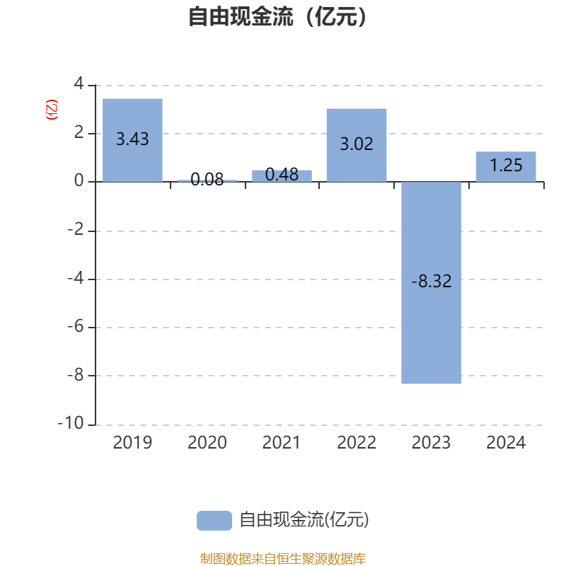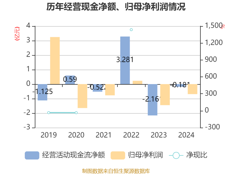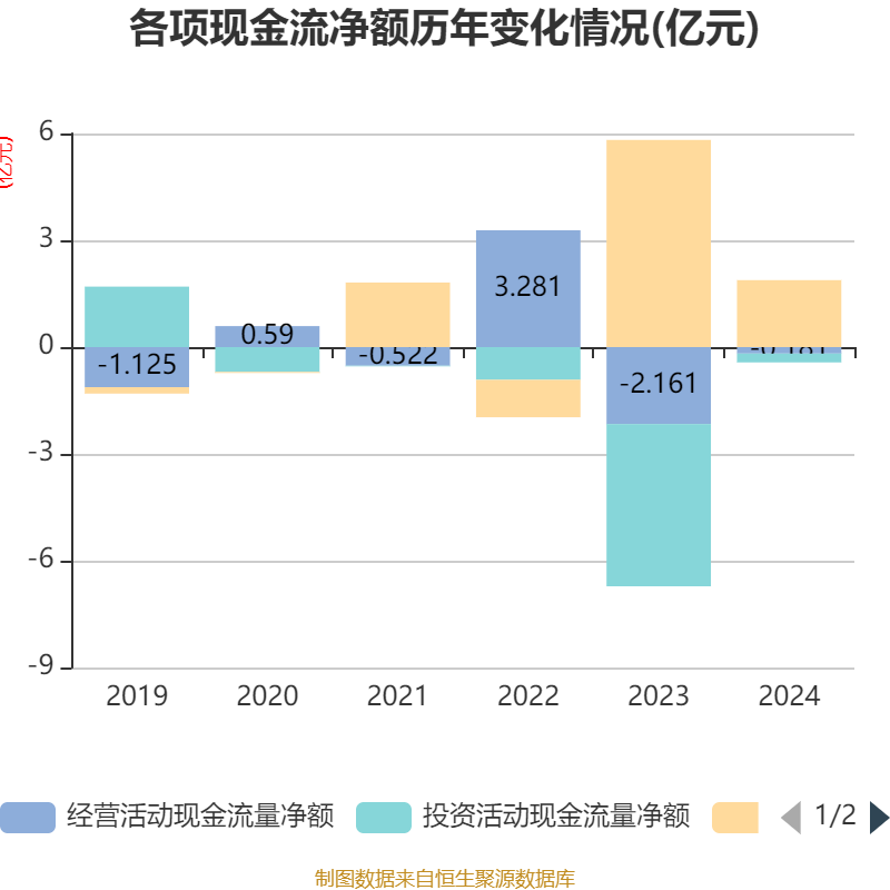 截至2024年,公司经营活动现金流净额为-1812.85万元,同比增加1.98亿元;筹资活动现金流净额1.88亿元,同比减少3.94亿元;投资活动现金流净额-2492.11万元,上年同期为-4.56亿元。