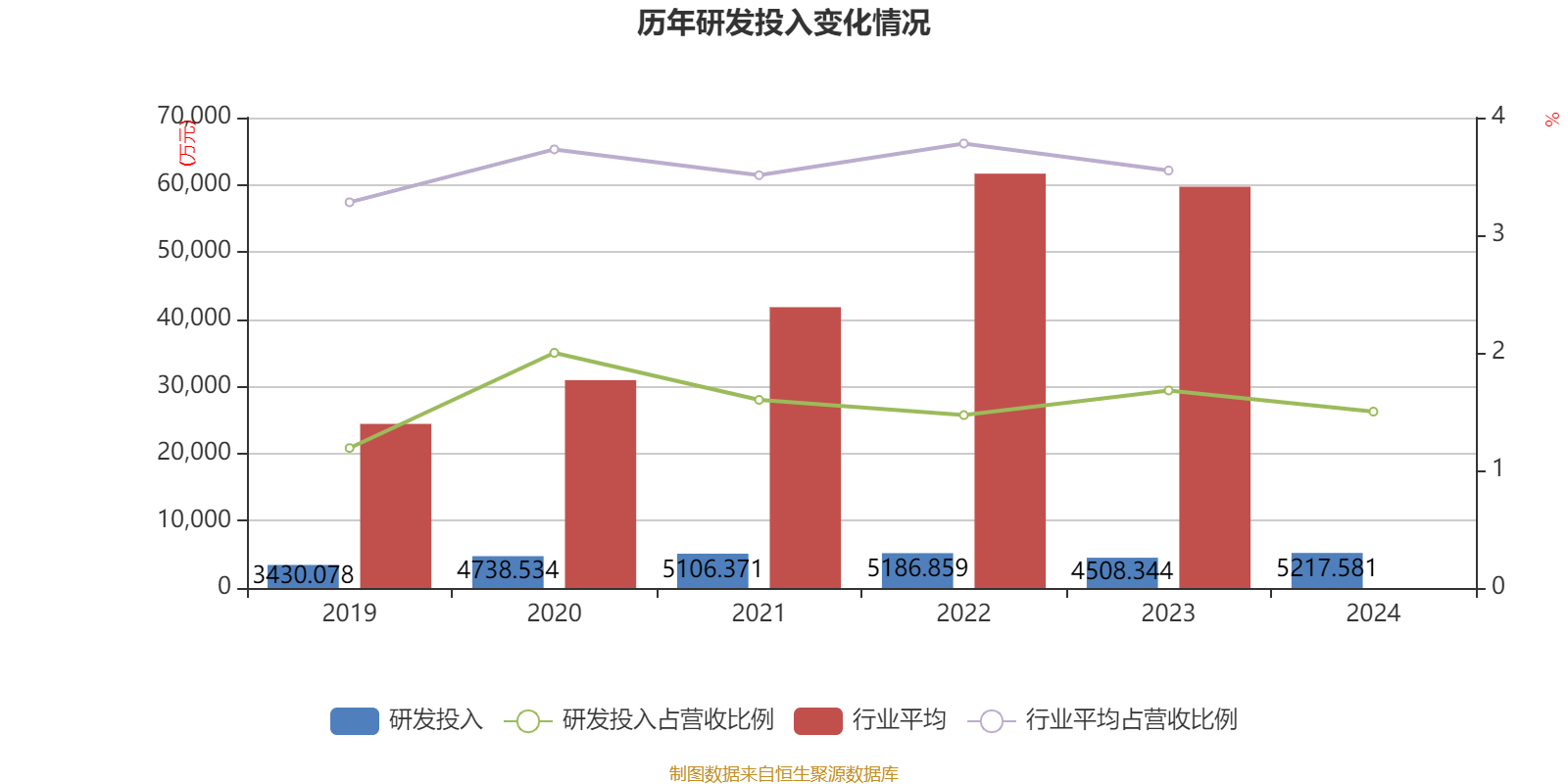 2024年全年,公司研发投入金额为5217.58万元,同比增长15.73%;研发投入占营业收入比例为1.5%,相比上年同期下降0.18个百分点。此外,公司全年研发投入资本化率为0%。