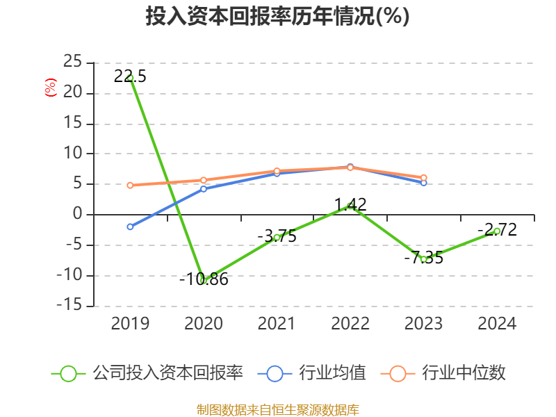 数据显示,2024年公司加权平均净资产收益率为-3.46%,较上年同期上升5.38个百分点。公司2024年投入资本回报率为-2.72%,较上年同期上升4.63个百分点。