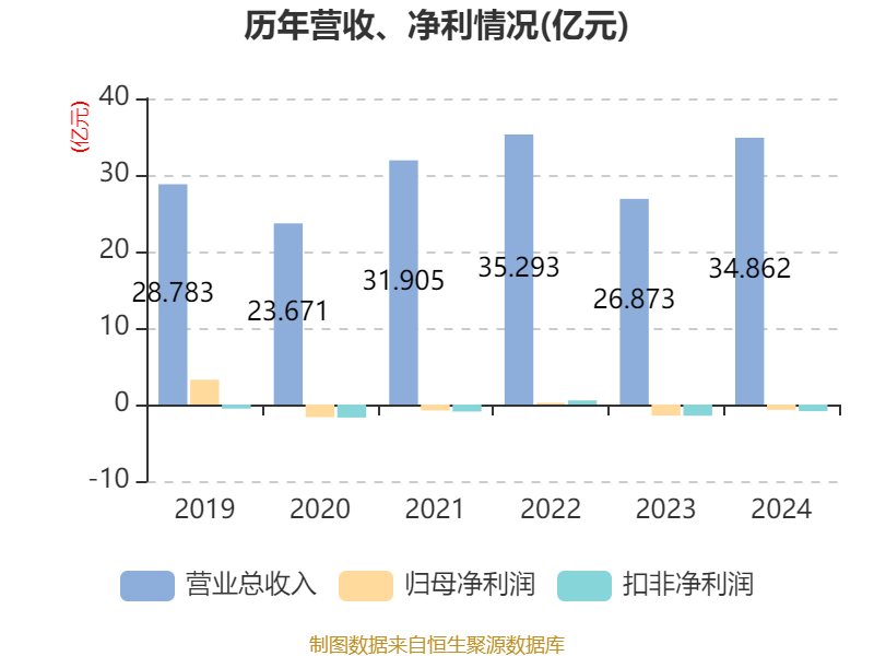 中证智能财讯宏创控股(002379)3月14日披露2024年年度报告。2024年,公司实现营业总收入34.86亿元,同比增长29.73%;归母净利润亏损6898.18万元,上年同期亏损1.45亿元;扣非净利润亏损8625.91万元,上年同期亏损1.47亿元;经营活动产生的现金流量净额为-1812.85万元,上年同期为-2.16亿元;报告期内,宏创控股基本每股收益为-0.0607元,加权平均净资产收益率为-3.46%。