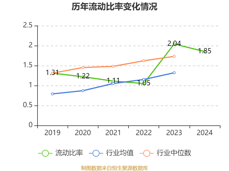 2024年,公司流动比率为1.85,速动比率为1.41。
