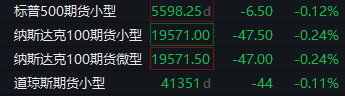 道指期货跌0.11%,标普500指数期货跌0.12%,纳指期货跌0.24%。