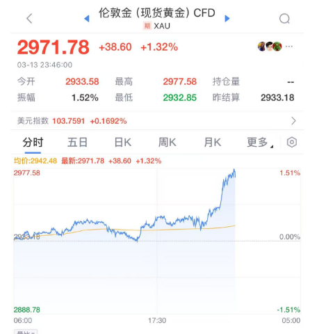 3月13日晚间,现货黄金价格涨超1.3%,创下历史新高,因关税不确定性加剧以及市场押注美联储将放松货币政策,推动黄金的吸引力持续增强。