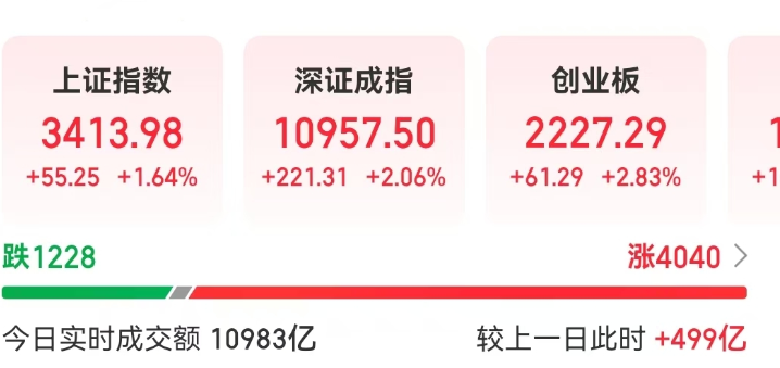 截至午盘,沪指涨1.64%,深成指涨2.06%,创业板指涨2.83%。沪深两市半日成交额1.09万亿元,较上个交易日放量499亿元。