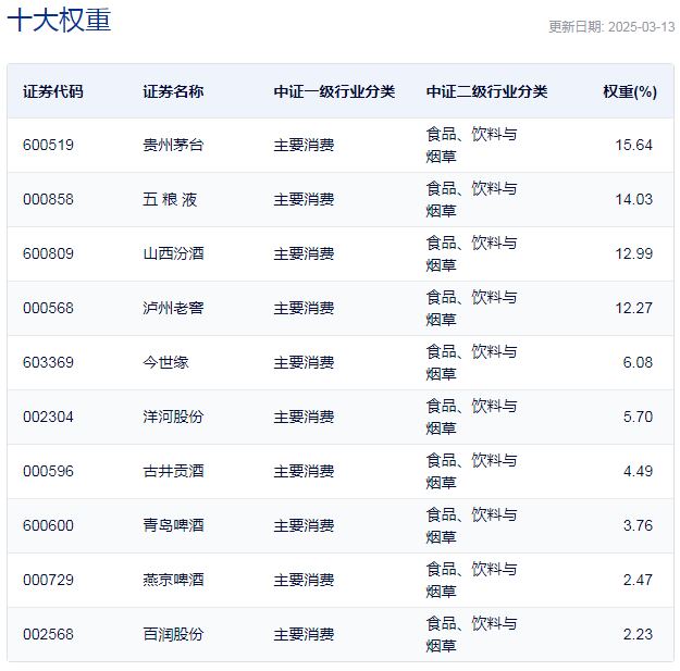 中证酒指数从沪深市场中选取涉及白酒、啤酒、葡萄酒酿造等业务的上市公司证券,成分股行业属性鲜明,聚焦酒类相关行业。其近年来累计收益显著跑赢沪深300、上证50等主流宽基指数,且相对其他食品饮料、消费行业指数仍然体现出了较好的走势,投资于中证酒指数相对投资于个股体现出了明显的优势。