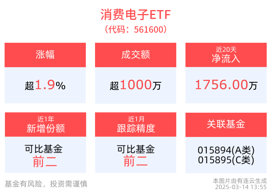 拉长时间看,截至2025年3月13日,AI人工智能ETF近1月累计上涨1.90%。消费电子ETF近3月累计上涨7.37%。