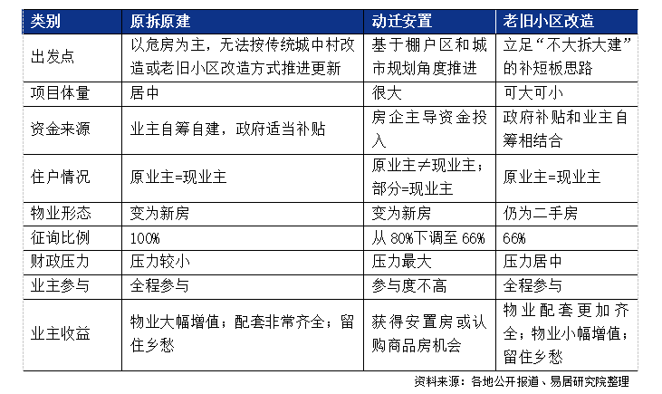 而在过往,城市更新以及城中村改造,较为常见的模式是地方政府通过新建安置房完成拆迁补偿,但随着房地产市场进入存量时代,传统模式容易造成重复建设与资源浪费,因此不少城市开始尝试新方法,比如原拆原建、房票安置等。