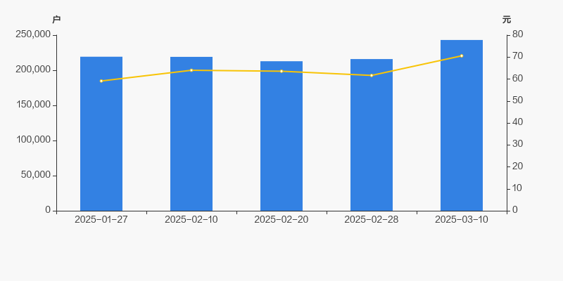 2025年1月27日至今,公司股东户数显著增长,区间涨幅为10.87%。2025年1月27日至2025年3月10日区间股价上涨19.37%。