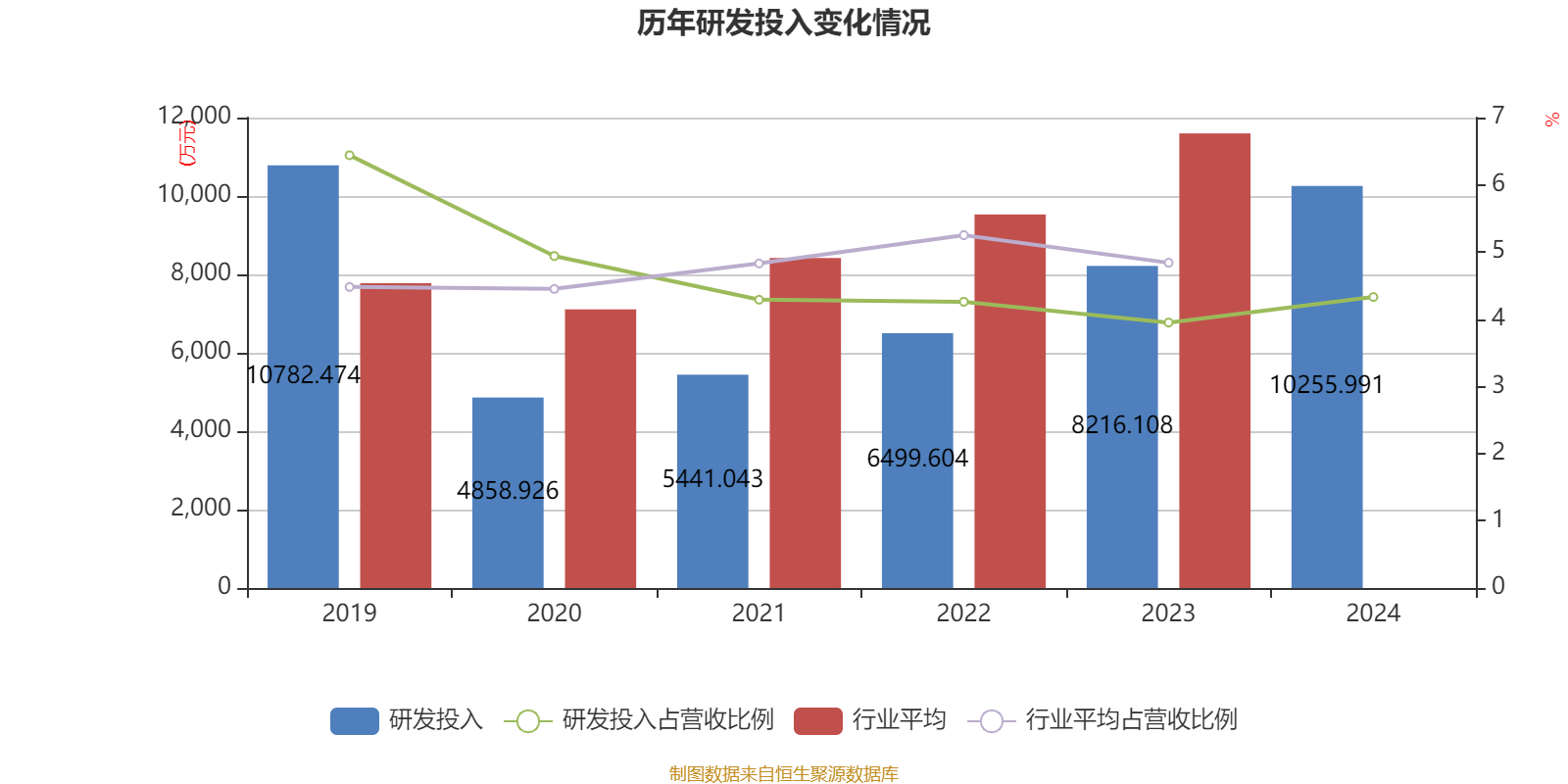 2024年全年,公司研发投入金额为1.03亿元,同比增长24.83%;研发投入占营业收入比例为4.33%,相比上年同期上升0.38个百分点。此外,公司全年研发投入资本化率为0%。