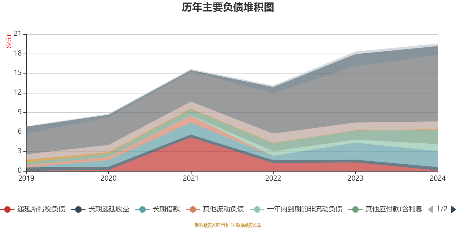 负债重大变化方面,截至2024年末,公司应付票据及应付账款较上年末增加17.51%,占公司总资产比重上升4.54个百分点;递延所得税负债较上年末减少92.33%,占公司总资产比重下降2.25个百分点;其他应付款(含利息和股利)较上年末增加54.36%,占公司总资产比重上升1.77个百分点;一年内到期的非流动负债较上年末增加121.65%,占公司总资产比重上升1.28个百分点。