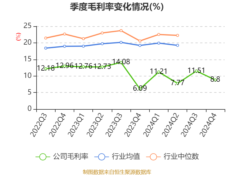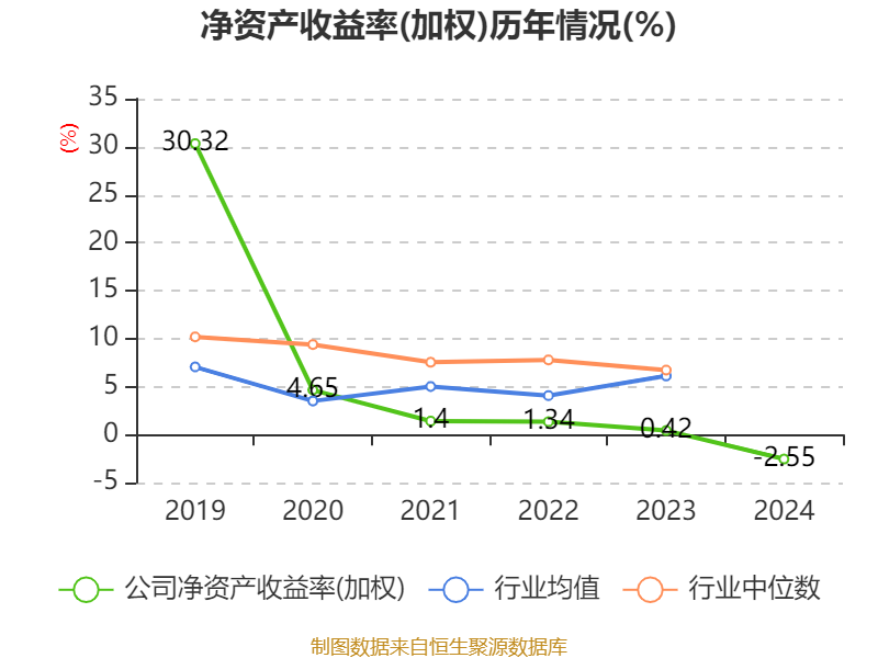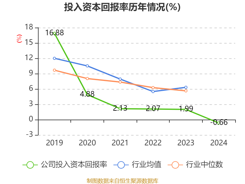 数据显示,2024年公司加权平均净资产收益率为-2.55%,较上年同期下降2.97个百分点。公司2024年投入资本回报率为-0.66%,较上年同期下降2.65个百分点。