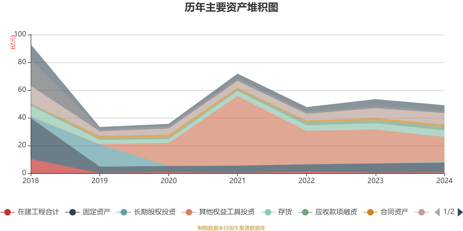 资产重大变化方面,截至2024年末,公司其他权益工具投资较上年末减少25.32%,占公司总资产比重下降8.46个百分点;应收票据及应收账款较上年末增加18.11%,占公司总资产比重上升3.77个百分点;固定资产较上年末增加8.29%,占公司总资产比重上升2.16个百分点;存货较上年末增加6.65%,占公司总资产比重上升1.35个百分点。