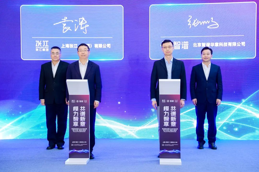 在当天的发布仪式上,上海张江(集团)有限公司(简称“张江集团”)与北京智谱华章科技有限公司(简称“智谱”)签署合作协议,标志着智谱正式加入模力社区垂类模型产业生态圈。