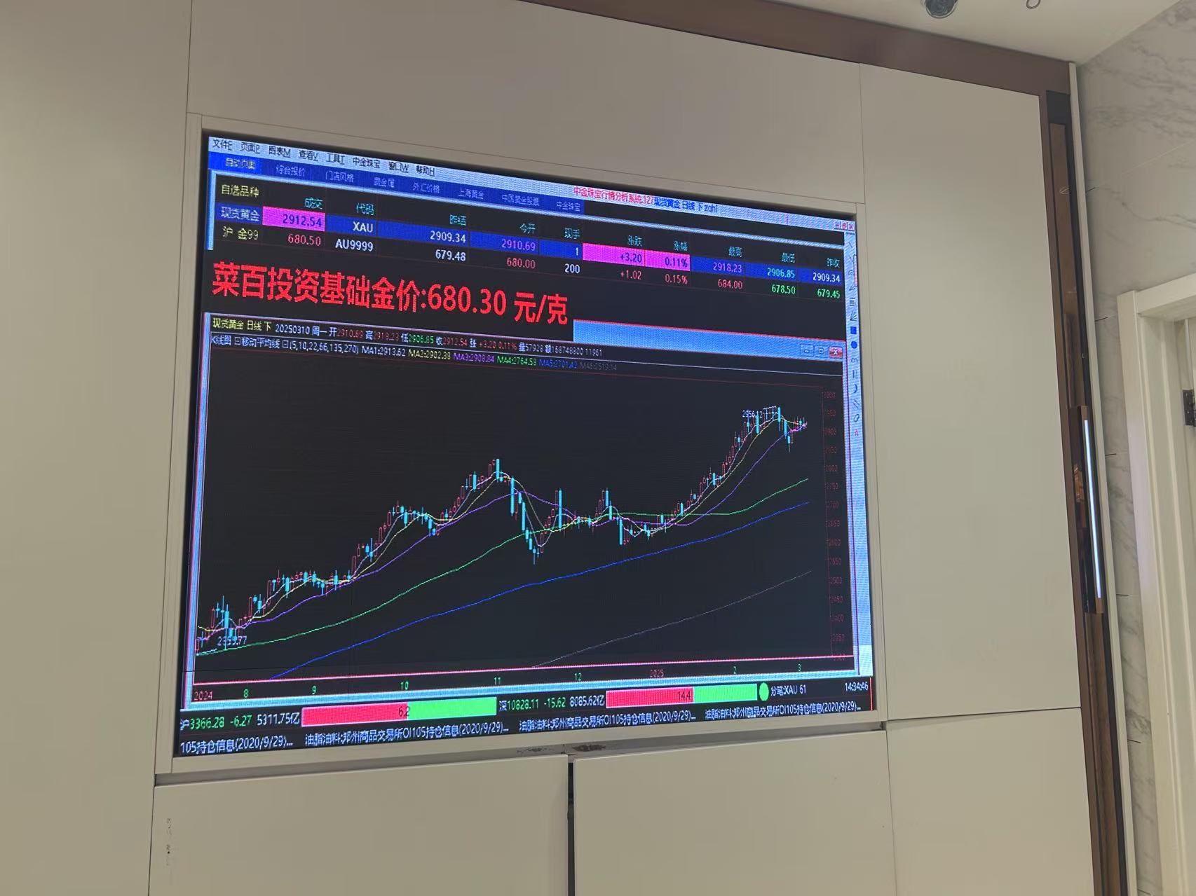 菜百商场的墙上,挂有金价实时金价。3月10日当天的金价在680元每克左右。新京报贝壳财经记者姜樊摄