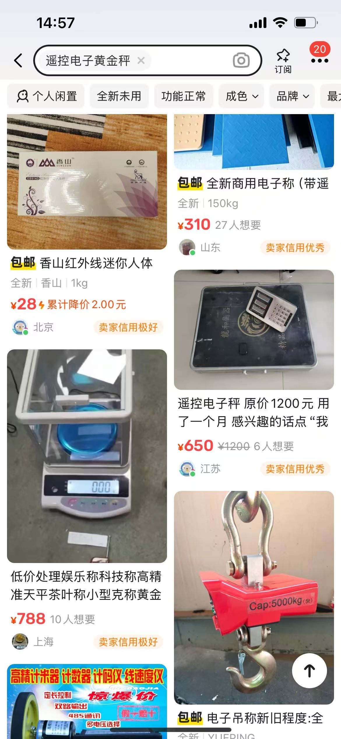 为了探究“鬼秤”的奥秘,记者在某二手交易平台上搜索“遥控电子秤”“黄金秤”等关键词后,网页显示有多个商家,但其对遥控秤的表述也较为隐晦。