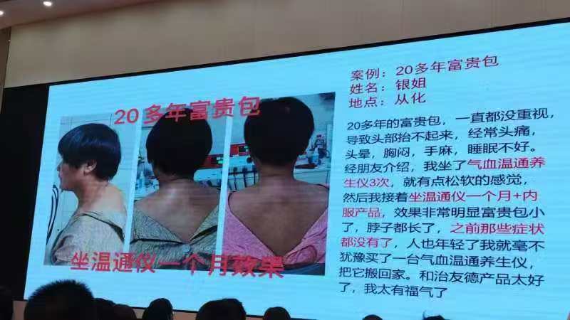 值得注意的是,气血温通养生仪并非第一次出现宣称功能的情况。2019年12月,中国质量新闻网报道,浙江省杭州市富阳区市场监管局连查3起直销公司门店涉嫌虚假宣传案件,均为美容院通过一台名为“气血温通养生仪”的仪器为顾客提供服务,宣称通过“温通疗法”可以驱散体内寒气,治疗各种疾病,广告牌上公布的适应症多达102种。经查,该气血温通养生仪标称是广州和治友德科技有限公司制造,在仪器及说明书上均没有找到医疗器械的备案号或注册号,经营者承认该仪器并非医疗器械。