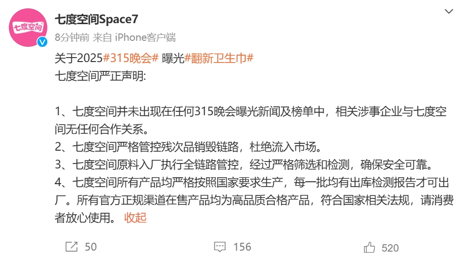 当晚,啄木鸟、护舒宝、七度空间等公司进行回应。
