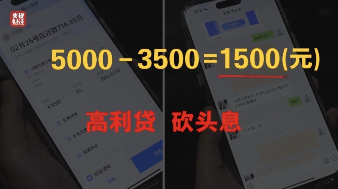 用电子签在陌生人之间借钱的方式,靠谱吗?央视“3·15”晚会曝光称,今年年初,洪先生和王女士急需资金周转,在网络上找到了愿意放款的人。洪先生在借贷宝平台、王女士在人人信平台,按照放款人要求,分别签署了具有法律效力的欠条和借条。洪先生称,自己向放款人借款5000元,实际只收到3500元转账,可平台欠条上的借款金额却登记为5000元,短短7天,就要额外还1500元利息,洪先生这才意识到,自己遭遇了赤裸裸的高利贷和“砍头息”!王女士在人人信平台借了30000元,到账14000元,扣除了16000元,说是利息。用电子签借钱,最终却借出了一个高利贷。