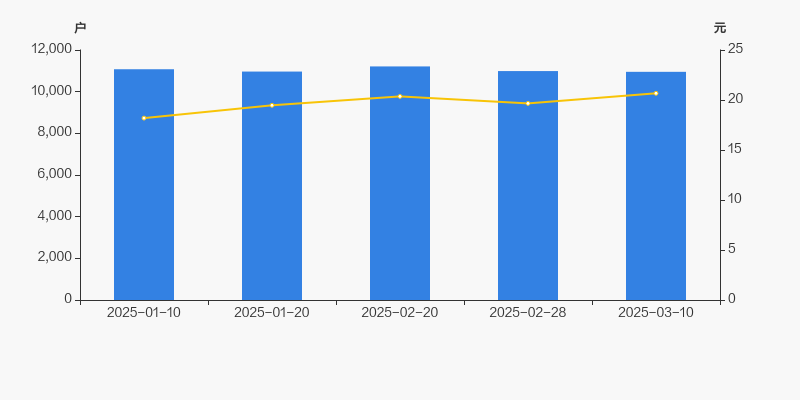 2025年1月10日至今,公司股东户数有所下降,区间跌幅为1.12%。2025年1月10日至2025年3月10日区间股价上涨13.63%。