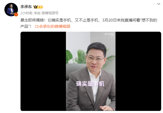 3月17日早间,华为常务董事、终端BG董事长、智能汽车解决方案BU董事长余承东发布视频,确认此前华为官宣的“想不到的产品”将是一款手机产品,“但又不止是手机”。
