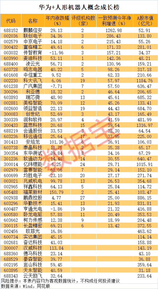 身兼人形机器人+华为的概念股有这些